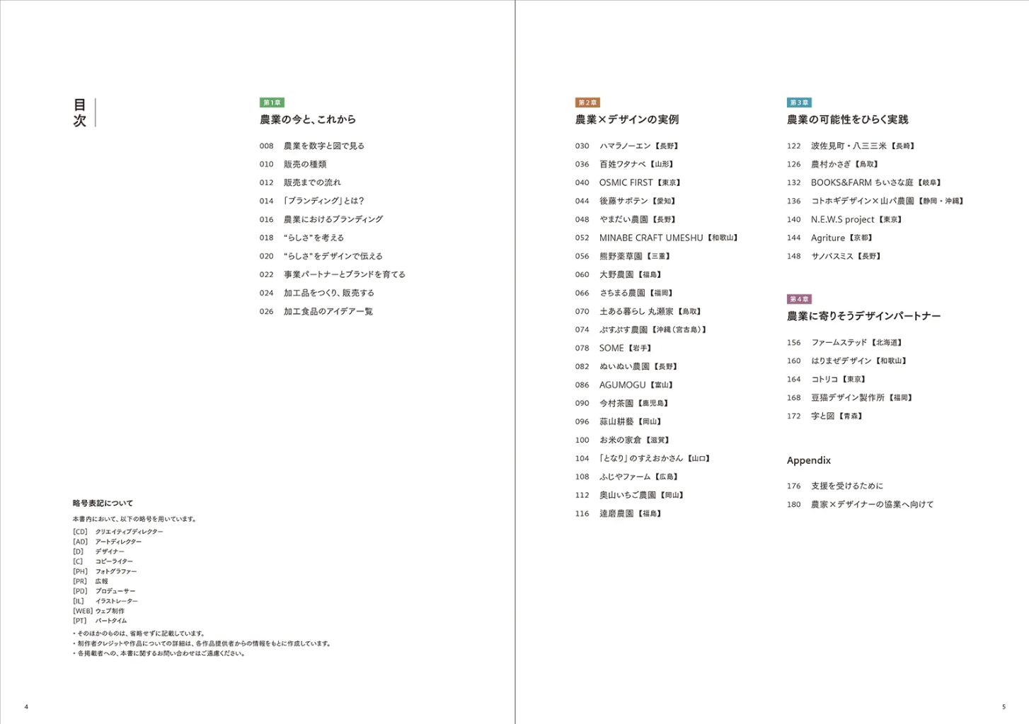 農業の現場に「デザイン」と「ブランディング」の力を取り入れ、付加価値を生み出している全国の農家の実例をビジュアル豊富に紹介。見た目の美しさだけでなく、“想いをどう伝え、ファンをどう育てるか” 、“農園や地域の課題にどう向き合い解決していくか”という本質に迫るデザイン事例集です。地域や農を支えたいデザイナー・行政関係者、地域おこしや六次産業化をめざす農家にとっても実践のヒントが詰まっています。