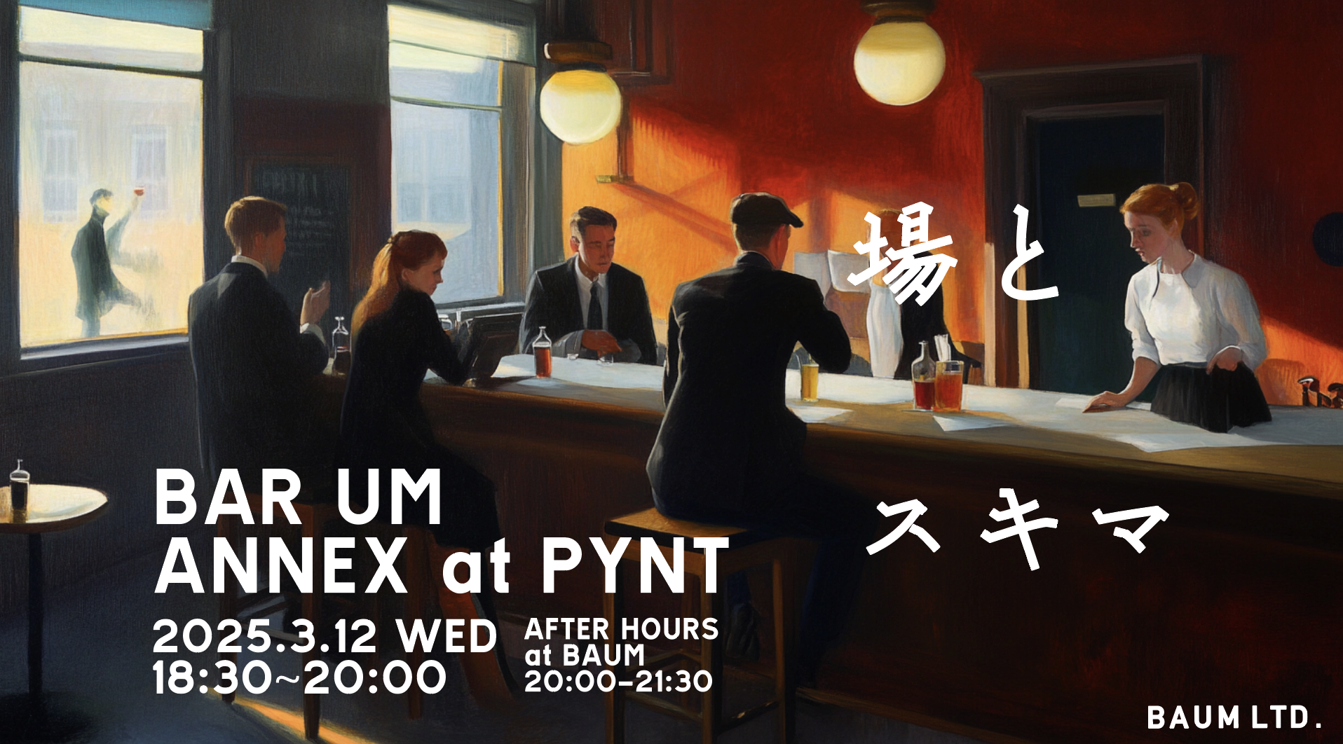 3月12日(水)のBAR UMは、バウムのご近所でもある「PYNT」にて開催!